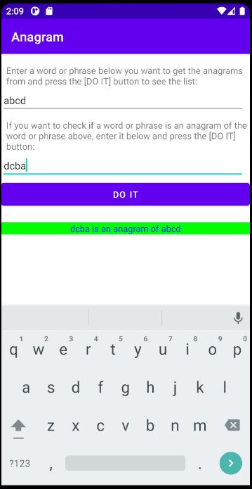 With this application you can view all the anagrams of a word or understand if a word is the anagram of another word.
