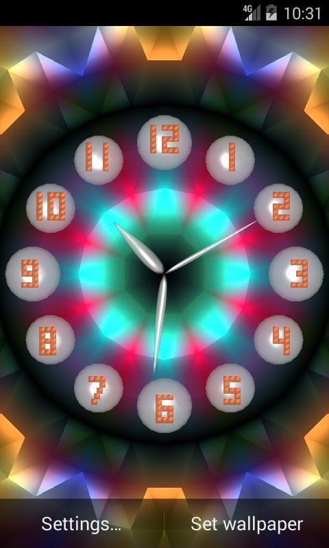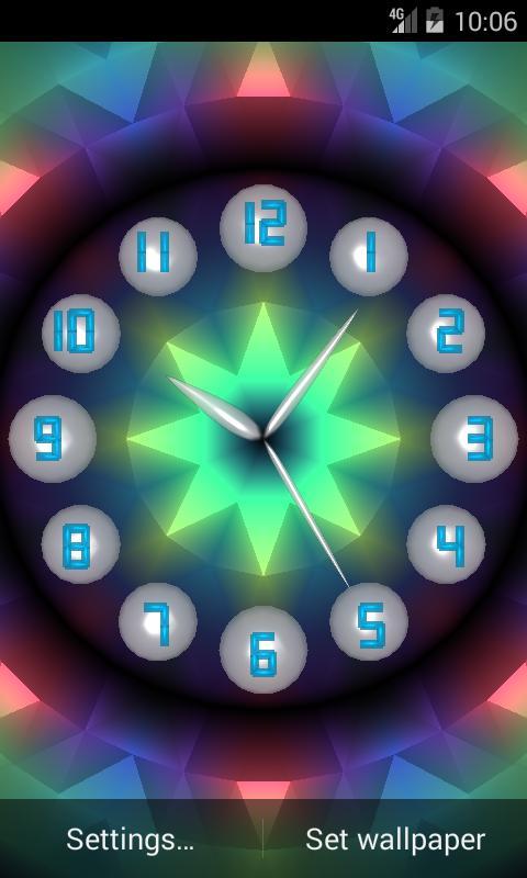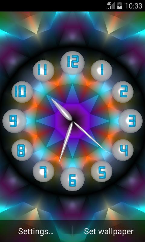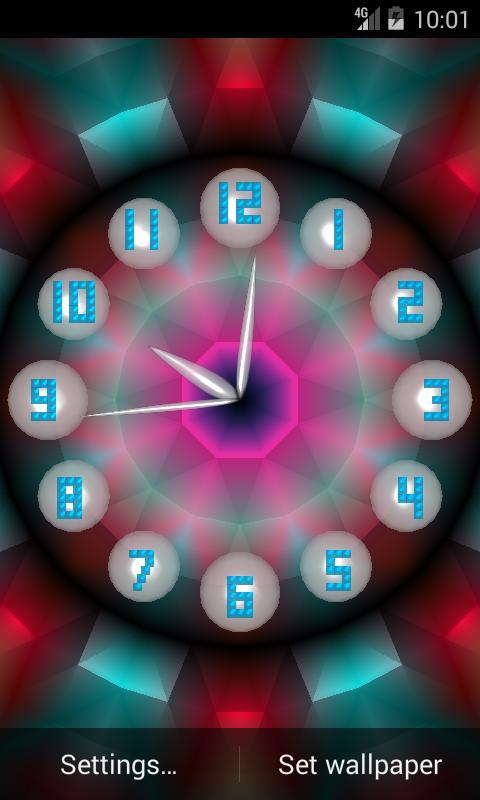 Analog clock live wallpaper free in the form of an clock wallpaper for your personal design screen smartphone. Animated large clock wallpapers with a dial of twelve balls with 3d arrows for hours, minutes and seconds. When you touch or tilt the screen clearly visible lateral sides of clock face, time clock app for android with 3d parallax effect occurs.