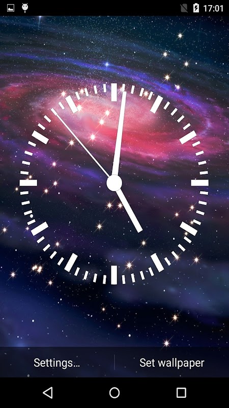 Customizable analog clock live wallpaper with space backgrounds