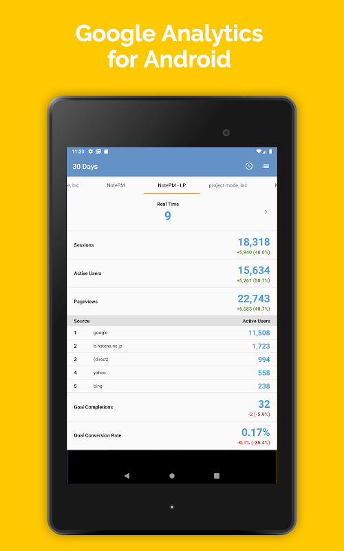 AnalyticsPM enables quick checking of Google Analytics information from your Android.