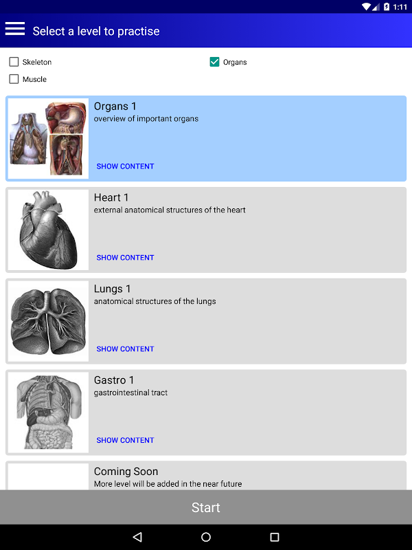 Anatomy Quiz is a game, which provides an easy way to learn anatomical structures like bones, muscles or organs.