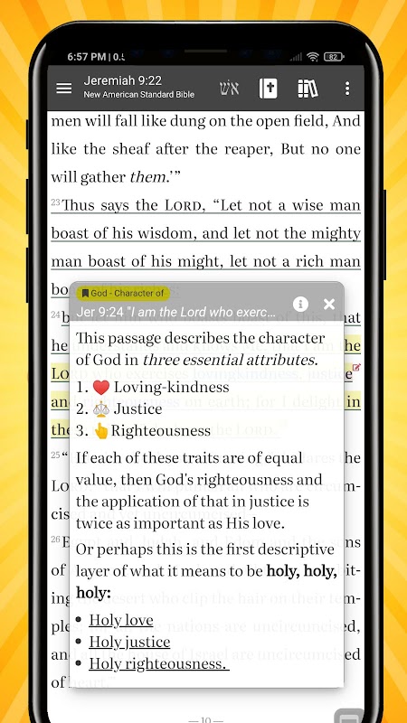 This application is developed by Bible readers, for Bible readers. It aims at helping you make your Bible study convenient, deep, and fun. The best part about this non-profit community project is that it is open-source, completely free, and contains no advertisements.