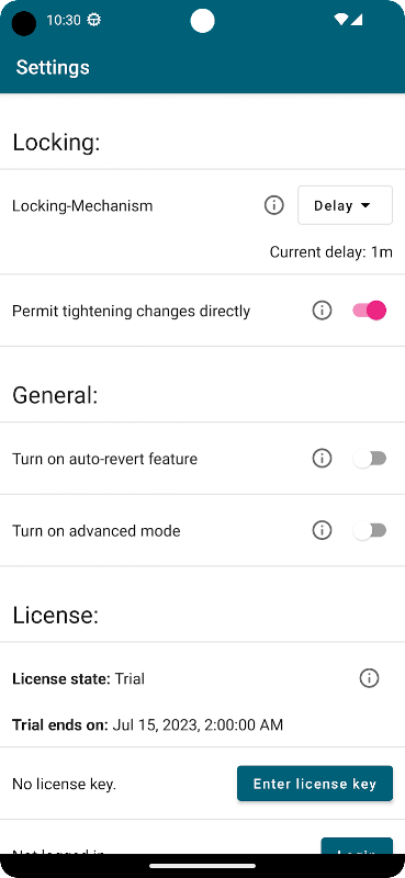 Andoff is an app that can be used to block other apps particularly effectively or protect them to a certain extent. In addition, certain device functions can be blocked (frozen) so that they can only be changed by the user with the help of a password or after a waiting period.