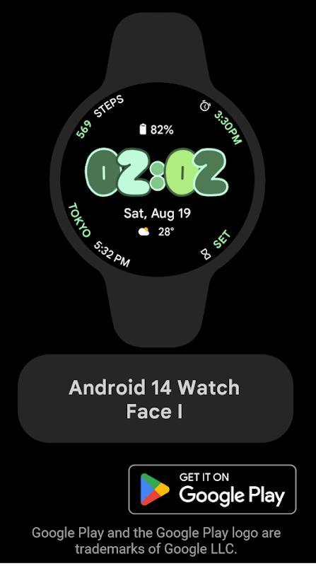 A Digital watch face for your Wear OS smartwatch inspired from Android 14 and Pixel. With organic shapes and pastel colors, this watch face aims to spice up your watch and bring a consistent UI with your phone.