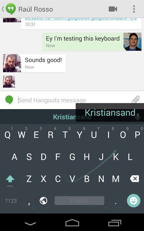 Just like many other modern keyboards, Android L Keyboard allows you to use gesture typing. In addition, you can access all of the 'emojis' that you find in Hangouts, which are 'hidden' below the 'enter' button if you press on it for a second.