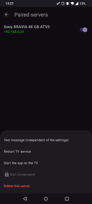 • Select which app notifications you want to show on the TV (in application menu) Default is nothing. You must select if you would like to.