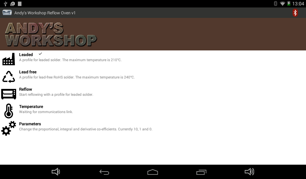 Note that there is also a new ATMega8L firmware version available from github. The new version fixes bugs in the manual reflow option and displays the current oven duty cycle when the android device is connected.