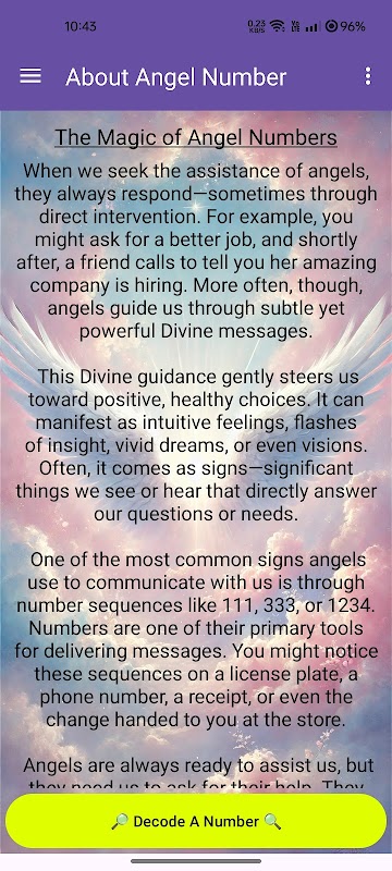 This app is designed to read the angle numbers that you enter and show you the appropriate messages that angle want to say you. Hope the app will be helpful to you and you will enjoy reading the angle number by using this app.
