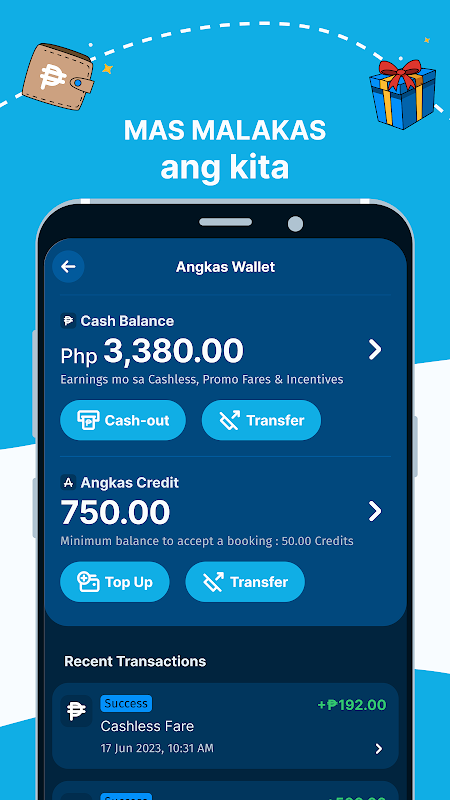 Madaling matrack ang iyong cashless earnings dahil derecho ito sa iyong Cash Wallet, at hindi na malilito pa dahil ang iyong top up ay makikita bilang Angkas Credits.