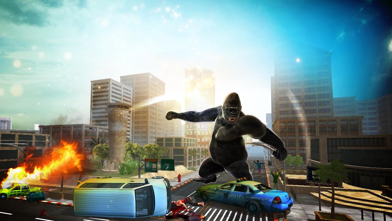 Realistic gorilla rampage simulations with fantasy 3d crazy city.