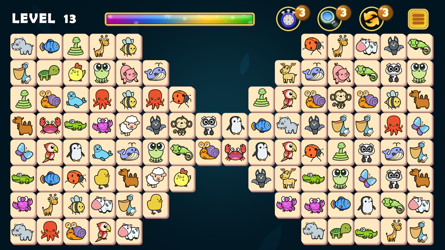 Connect 2 identical Animal Tiles using no more than 3 straight lines.