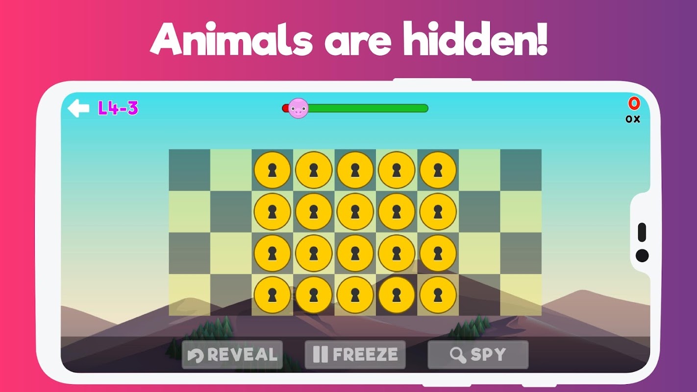 Here is your goal: Our adorable animals are hidden behind doors. It is up to you and your memory skills to remember their locations and match them with their pairs. When you match all the pairs; you complete the puzzle and win the level.