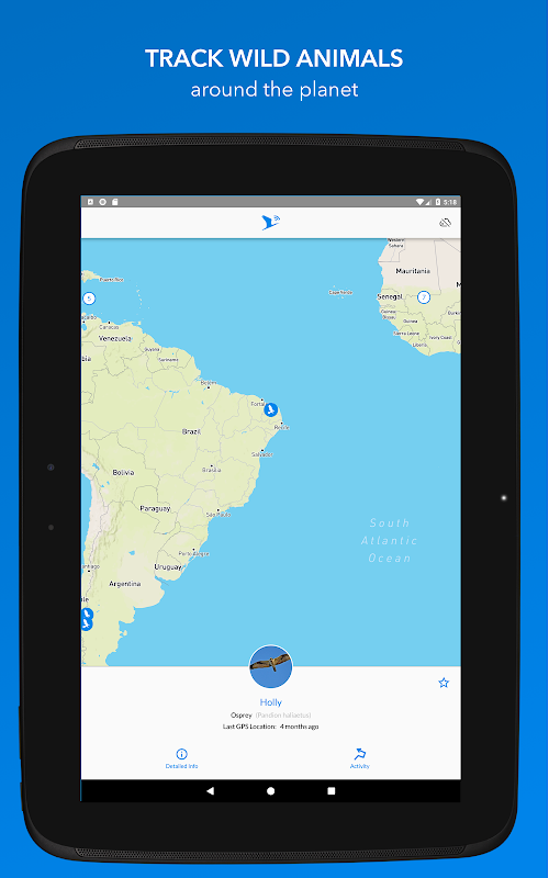With Animal Tracker, you can follow the movements of wild animals all over the world that are being tracked in near-real time! These movements are collected by tiny GPS tags carried by the animals and are stored at Movebank, a free online infrastructure used by hundreds of researchers to manage, share, analyze, and archive animal movement data. You can easily participate in our scientific research projects: Upload your real-life observations and photos of our tagged animals to Animal Tracker. Your observations are crucial for our scientists! We can determine the positions of the tagged animals but we are lacking behavioral observations - we can interpret our data much better with your additional observations. Therefore: become a scientist, become an Animal Tracker!