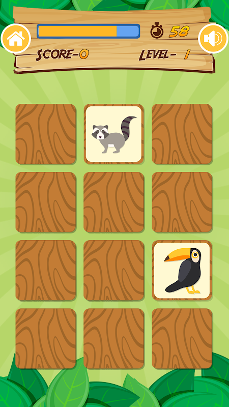 For each level, tap the square wooden boxes and need to memorize the animal behind it in order to match its pair animal. You have to complete a level in the given amount of time. Its has different mode for difficulty.