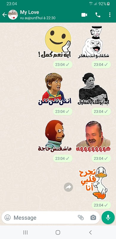 You will find arabic stickers for Whatz, gulf stickers, love stickers for Whatz, funny memes stickers, saudi arabia stickers, And also Egyptian stickers for Whatz and more ...