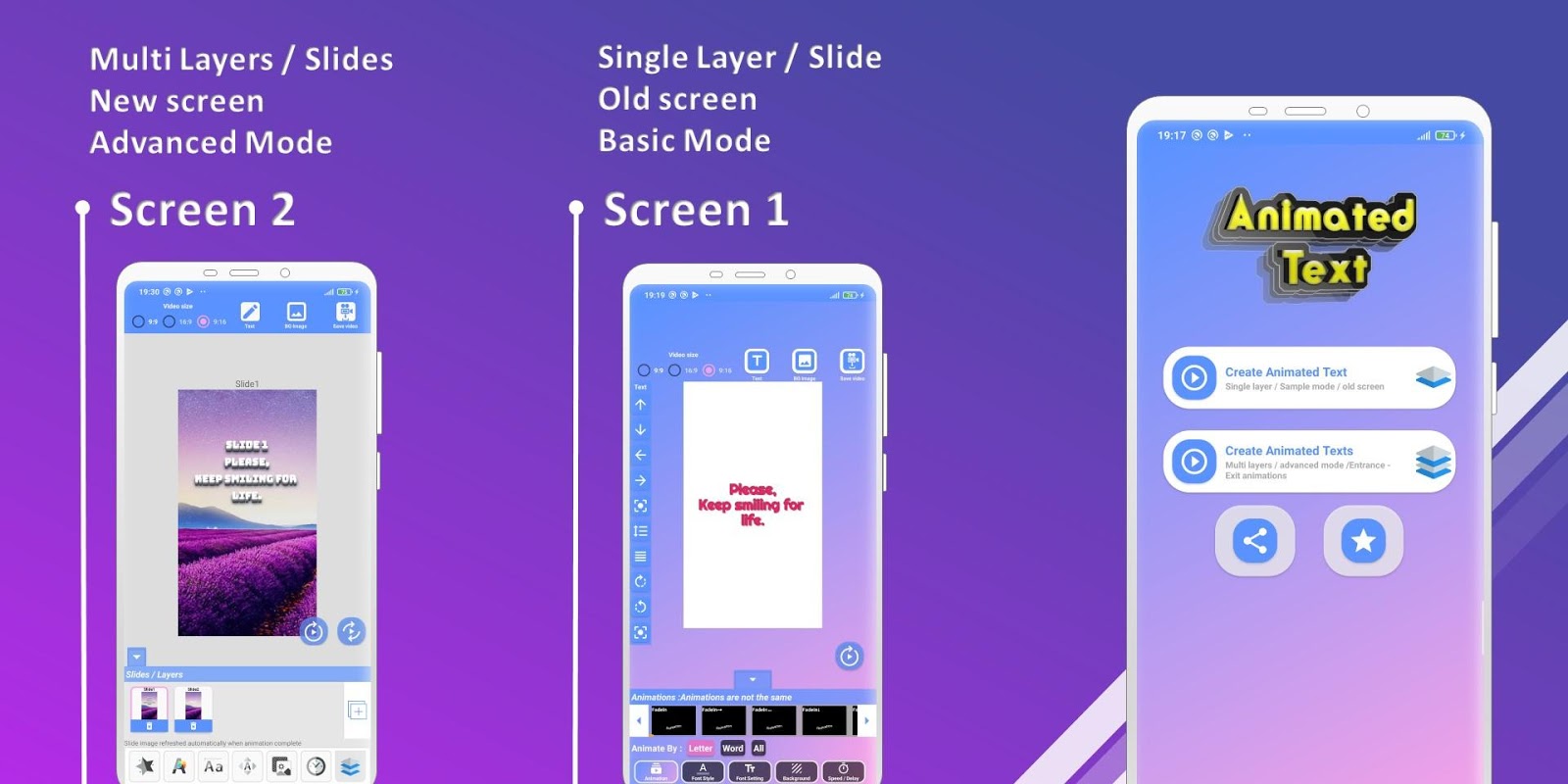 Free animated text video maker – text to video – intro video maker – Animation maker allows you to create a beautiful animated text videos with more than 500 animation types you can save and share video with social network apps (WhatsApp – Facebook – Instagram – twitter ….) , also you can style the animated text with many styles and many colors, turn your text into stunning animations with animated text app.