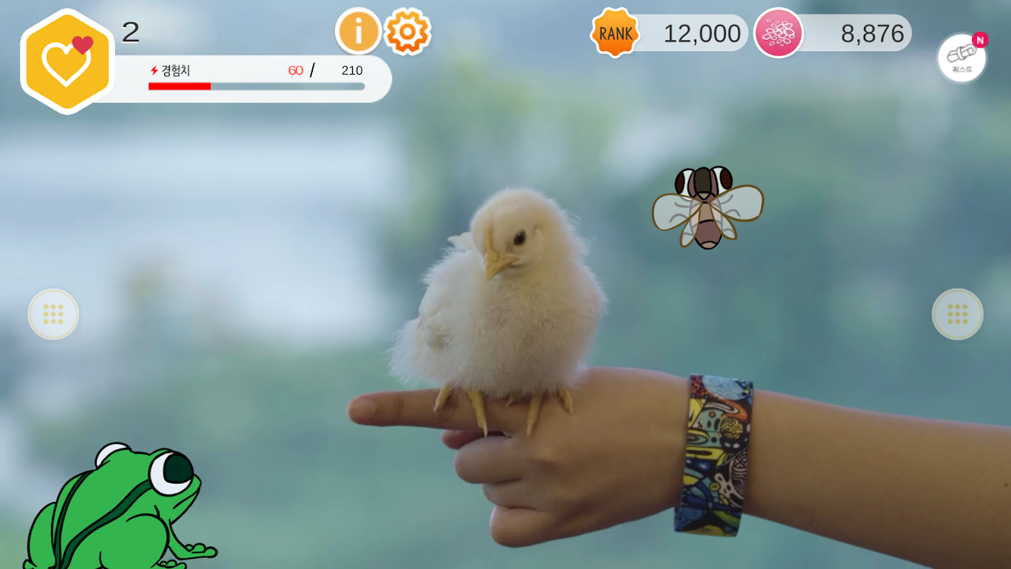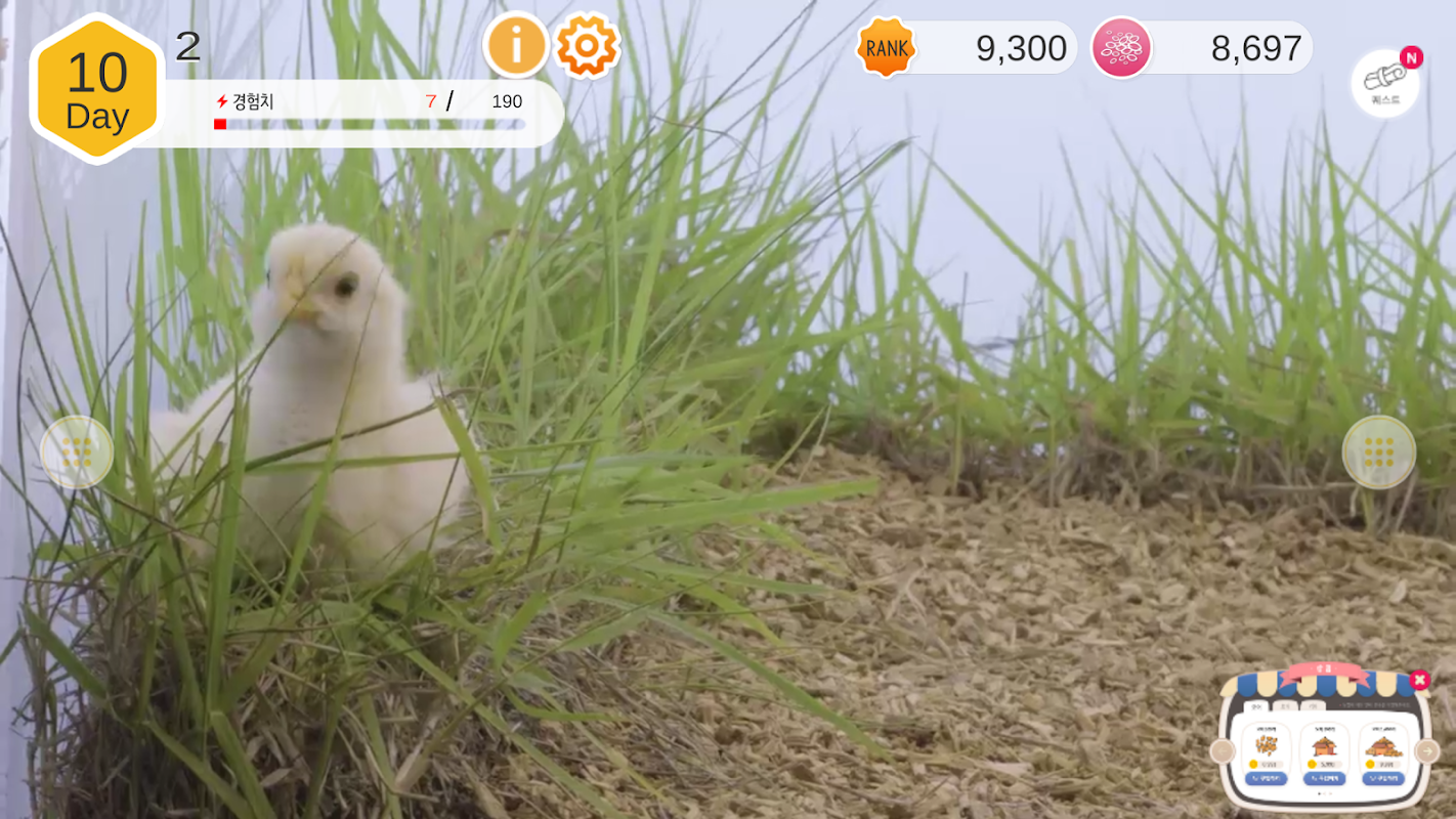 Users will control various conditions and environments for raising chicken on the smartphone to get scores and gain information and experience with regard to animals.
