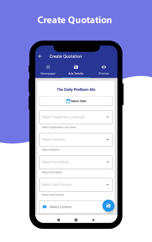 Our clients can choose specific date, newspapers, platform, print mode, ads position, column and inch to submit a quotation for ads publication. Annex administrator will review that quotation and contact with the particular client for further process.