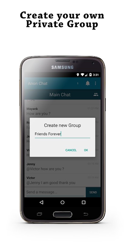 Now you be Anon Chat with anyone throughout the world. Feel free to chat on any topic with anyone. Download “Anon Chat” and join the biggest free global chat rooms available. Here you can socialize, meet new people, meet with people of your interest, flirt and even find out dates around you. It’s free for all and anyone can join this chat room.