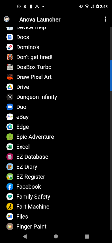 Anova is a basic application launcher for Android. If people enjoy the concept of a simple minimalist launcher, then let me know what features you would like me to add!