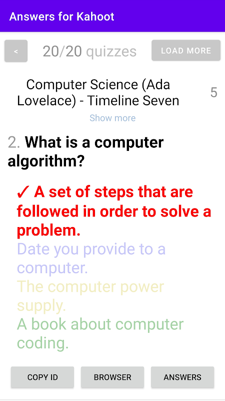 - Get asnwers for kahoots hosted live - in class or virtually - and use the app to be number one!