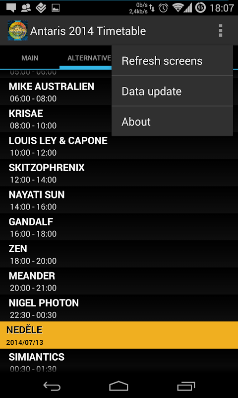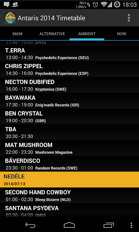 Timed notifications are working now. Just click on your loved artist to set timed notification. Device will notify you 15 minutes before his (her) start and on time.