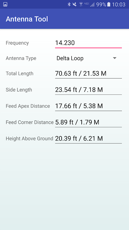 A tool to help ham radio, CB, and other radio users to create antennas of various types. Calculations available for dipole, vertical (1/8, 1/4, 3/8, 1/2, 5/8, 3/4, 7/8, and full wave), inverted vee, quad loop, delta loop, and yagi. Simply enter the frequency, select the antenna type, and all necessary calculations are displayed.