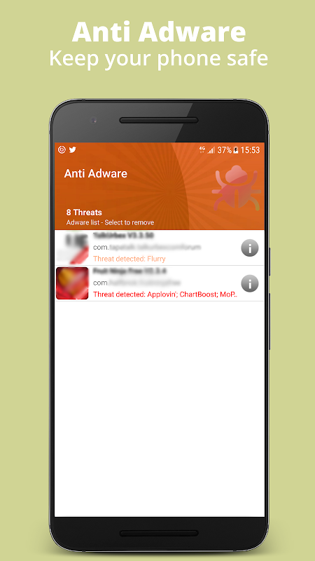 With Anti Adware, you will be able to know which app is responsible for these ads and will be able to remove them easily. Anti Adware improves your security. Keep your mobile safe and don't hesitate to use also antivirus.