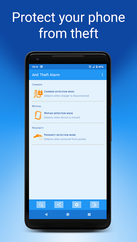 Note: This app doesn't claim that it can avoid theft completely. It's the owner's responsibility to be vigilant. With anti-theft alarm you can avert theft.