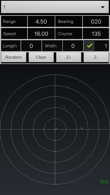 The app also contains an ARPA scenario chooser: there are 7 pre-defined scenarios to choose from. When you select one of these, the target ships are automatically setup, in scenarios that put your own ship in a close quarter situation. You then have to decide what to do to put your vessel back in a safe condition.