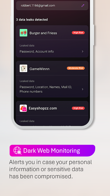 It keeps an eye on and tracks the dark web for leaks of your personal information like email, passwords, phone numbers, or credit card numbers being shared, enabling you to take preventive action against fraud.