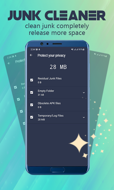 Virus Cleaner with powerful phone cleaner removes junk files, app cache, residual files, useless APK files etc. By releasing more storage space, the phone cleaner optimizes Android mobile phone performance. It is also system cache cleaner and clean android master.