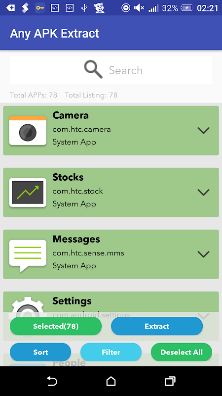 7) One touch extract all selected APPs