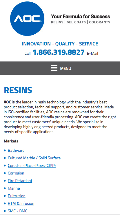 With more than 50 years of industry leadership, AOC knows technology, lives quality and delivers service better than any other resin supplier.