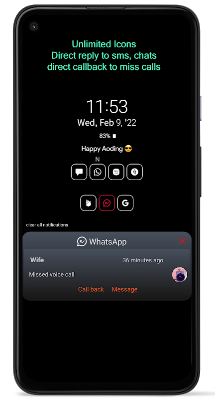 Reply to all chats like sms. watsapp, facebook right from the always on display