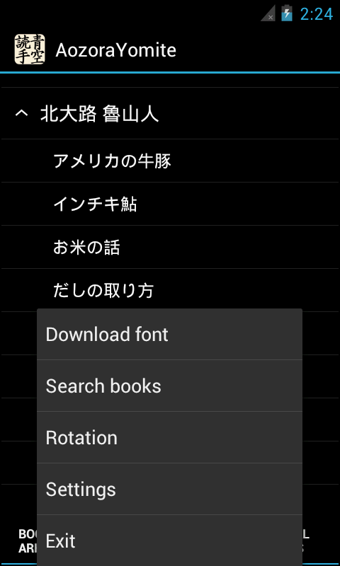 AozoraYomite is a reader app for contens provided by Aozora Bunko (http://www.aozora.gr.jp/).