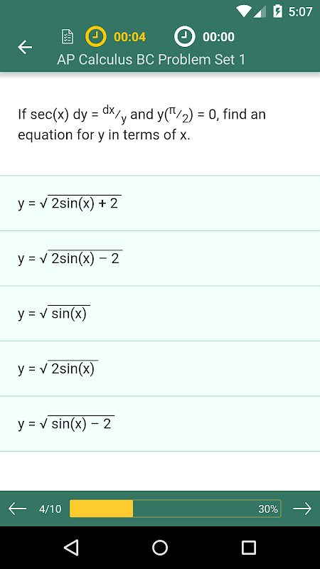 Prepare for the AP Calculus BC test’s multiple-choice and free response sections using the free Varsity Tutors AP Calculus BC app for Android devices. The app’s challenging practice and diagnostic tests can push you beyond your comfort zone and closer to a 5 on the exam.