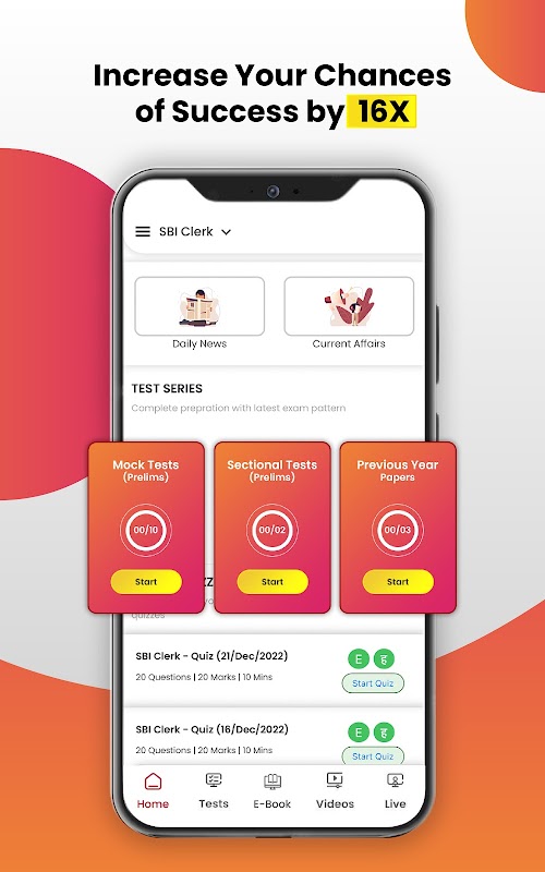 Get the latest alerts on Exam Notification, Admit Card & Results, etc. Start preparing for your desired exam today on our Mock Test App.