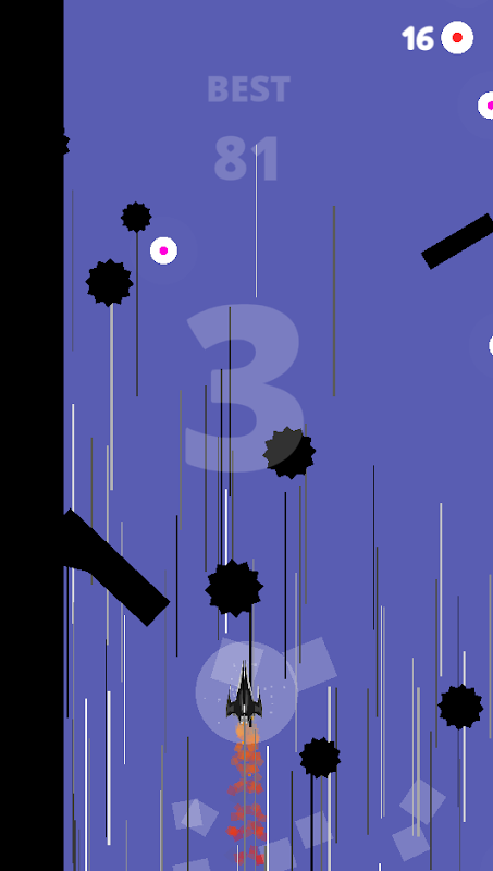 – When you touch the screen, the rocket proceeds in the direction the rocket was headed at the moment you touched it.