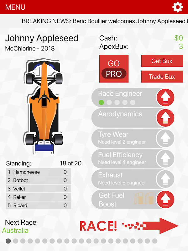 Formula racing fan looking for something a little different? APEX Race Manager is for you - it's an insanely addictive, unique simulation, strategy game where you visit all 21 rounds of the 2019 APEX Race Manager season.