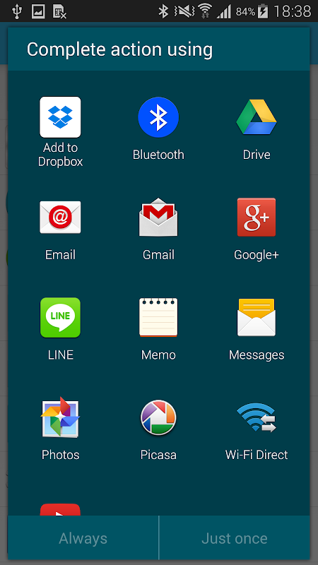 - Able to share via Bluetooth, wifi...