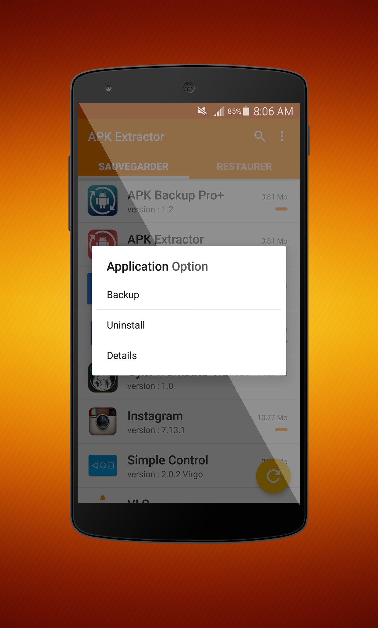 Cette application extrait APK qui est installé sur votre Appareil Android et copier sur la carte SD
