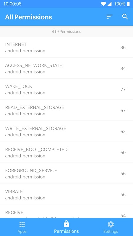 You can also search all permissions that have been requested by apps on your device and find apps based on a certain permission