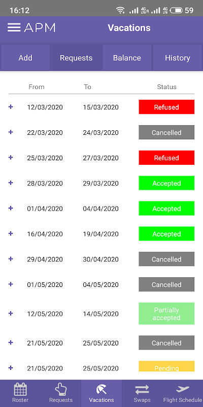 • Vacations requests