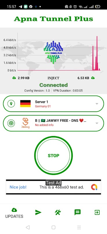 Apna Tunnel plus VPN is a fast app provide VPN service. Not need any configuration, just simply click one button, you can access the Internet securely and anonymously.