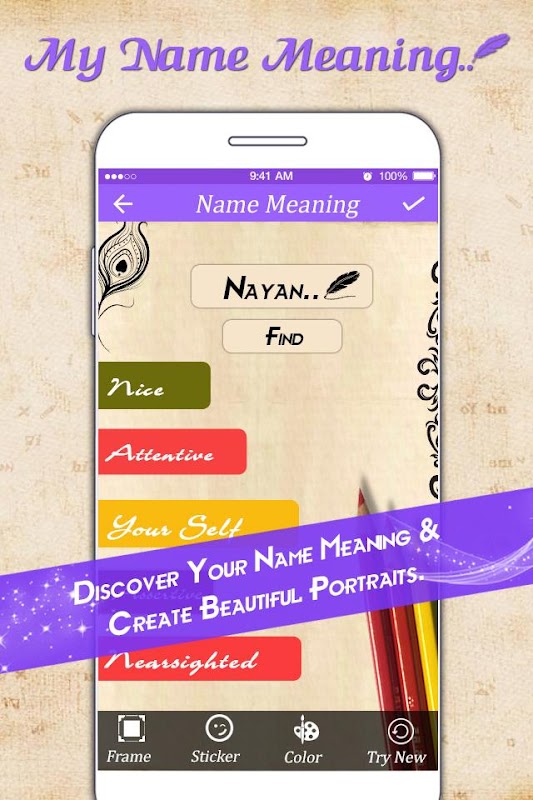 My Name meaning Application help you to check what is behind your name and make a picture with your name meaning.The information in your name can reveal your destiny.