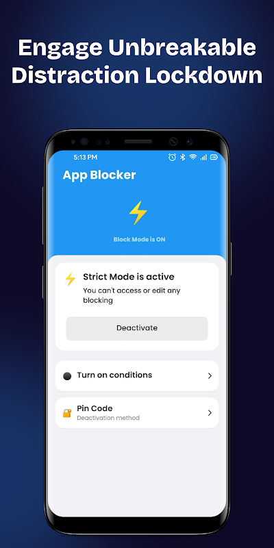 - Personalized Profiles: Create multiple blocking profiles for different scenarios (Work, Study, Kids, etc.) and switch between them instantly. Block social media in one profile, block gaming apps in another, or use a general screen block for downtime.