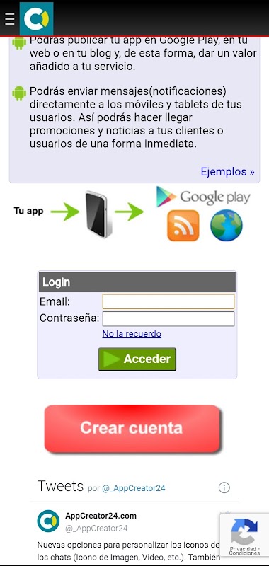 AppCreator24 allows you to create a native application for Android mobiles and tablets for free, easily and without programming knowledge. From your control panel you can set the content of your app. For example Chats, Forums, Images, Videos, Music, Products, etc.