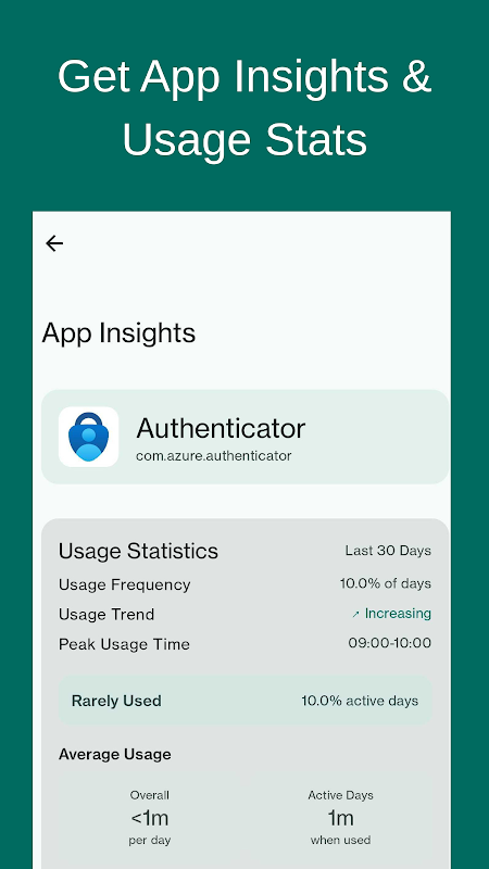 Track how much time you spend on each app throughout the last 30 days. Discover your most used apps, patterns of usage, and even idle behaviour.