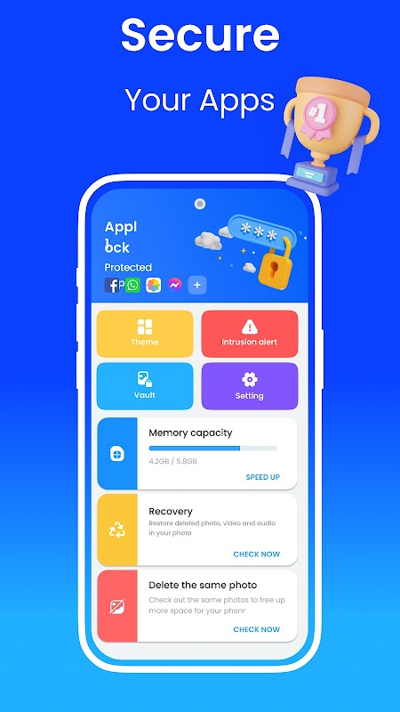 Safely lock all apps with a 6-digit passcode, fingerprint, or pattern.